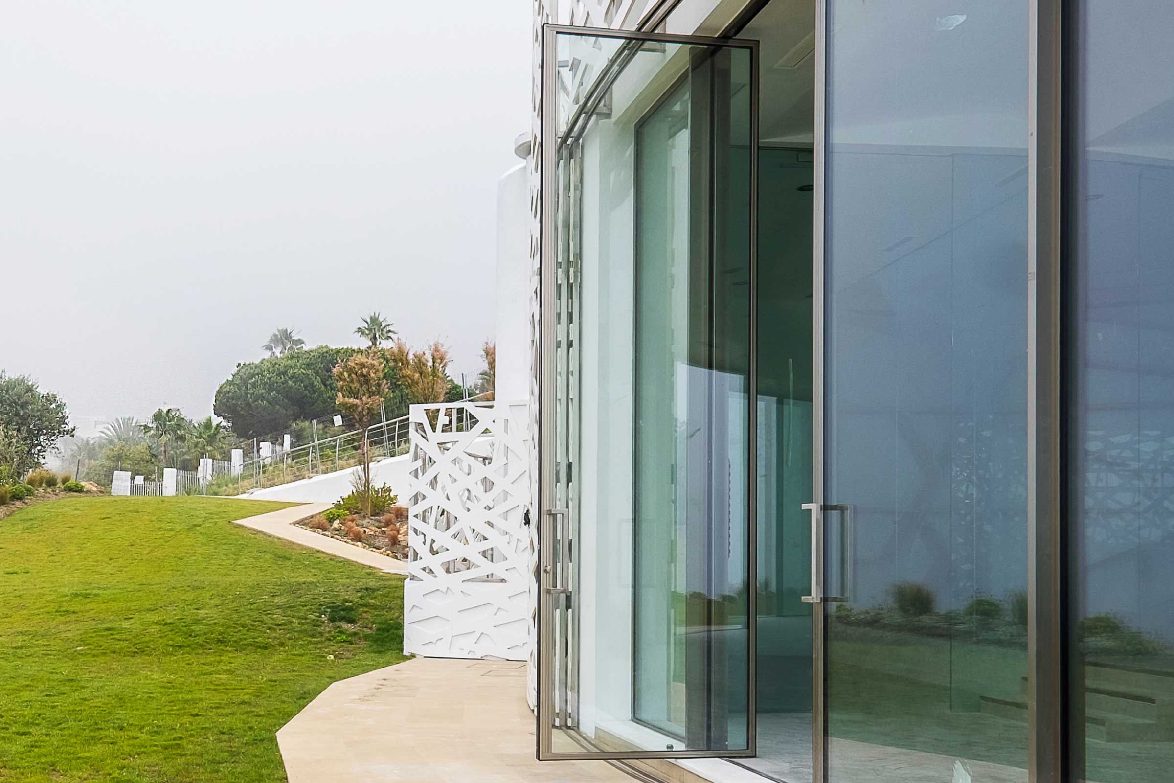 EXPansion EXP-P pivot doors are perfect for large spaces. The tailored design can also be used to create pivot windows, giving a facade a minimalist, uniform look.